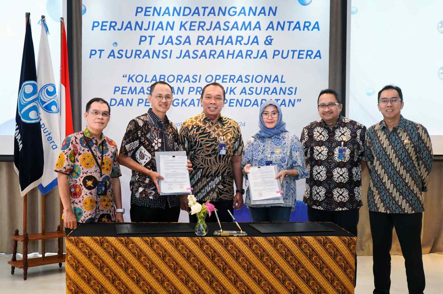 Penandatanganan dilakukan oleh Direktur Operasional Jasa Raharja Dewi Aryani Suzana dan Direktur Utama PT Jasaraharja Putera, Abdul Haris, yang disaksikan oleh Direktu Utama PT Jasa Raharja Rivan A. Purwantono di Hotel Hyatt Yogyakarta, Selasa (27/08/2024).