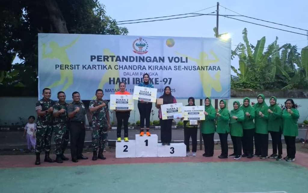 Mataram, NTB — Sorak sorai dan tepuk tangan meriah mengiringi setiap laga dalam lomba voli ibu-ibu yang digelar Korem 162/Wira Bhakti dalam rangka memeriahkan Peringatan Hari Ibu ke-97. Di tengah atmosfer penuh semangat tersebut, Persit Kartika Chandra Kirana Cabang XXV Dim 1606/Mataram berhasil menorehkan prestasi membanggakan dengan meraih Juara II pada ajang bergengsi yang diikuti Persit dari seluruh Komando Distrik Militer (Kodim) se-Pulau Lombok di Lapangan Voli Korem 162/Wira Bhakti, Jalan Lingkar Selatan, Kelurahan Pagutan, Kecamatan Mataram, Kota Mataram, Selasa sore (16/12/2025).