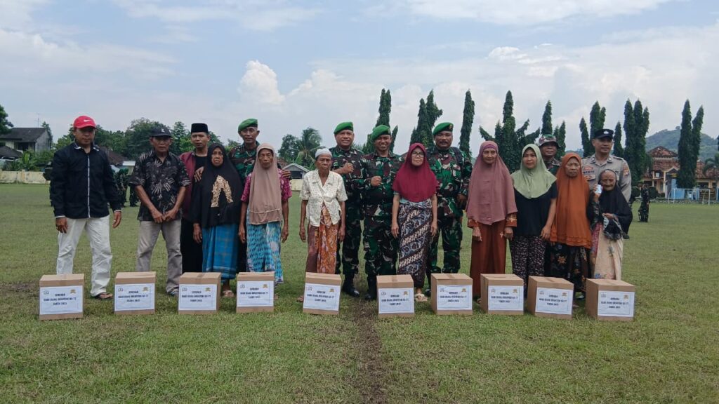 Sejak pagi, suasana di lokasi tampak tertib dan penuh keakraban. Prajurit TNI menjalankan rangkaian Ton Ting dengan disiplin, sementara di sisi lain warga menyambut hangat kehadiran aparat yang juga membawa harapan. Paket sembako disalurkan secara langsung kepada masyarakat sebagai wujud kepedulian sosial sekaligus bukti nyata kehadiran TNI di tengah kehidupan warga.