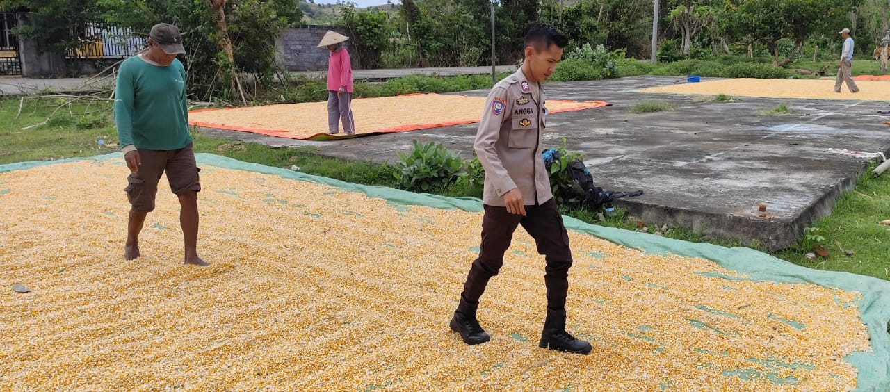 Dalam rangka mendukung Program Ketahanan Pangan Nasional menuju Indonesia Emas 2045, Bhabinkamtibmas (BKTM) Desa Songgajah Polsek Kempo melaksanakan pemantauan terhadap proses penjemuran jagung milik warga binaan di wilayah Kecamatan Kempo, Kabupaten Dompu.