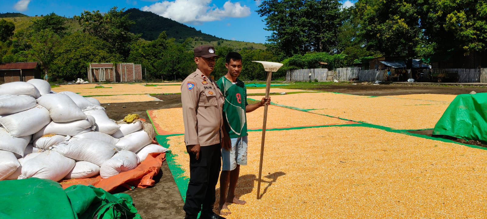 Dalam rangka mendukung Program Ketahanan Pangan Nasional menuju Indonesia Emas 2045, Polsek Kilo melalui Bhabinkamtibmas Desa Kramat melaksanakan kegiatan pemantauan terhadap warga binaan yang tengah melakukan penjemuran hasil panen jagung.